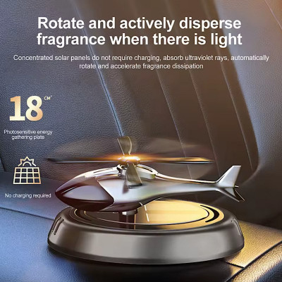 این محصول، با بهرهگیری از انرژی خورشیدی، بدون نیاز به هیچ گونه باتری یا سیمکشی پیچیده، انرژی لازم برای چرخش پرههای هلیکوپتر را تأمین میکند. این پرههای چرخان، علاوه بر ایجاد جلوهای بسیار زیبا و مدرن، باعث پخش یکنواخت اسانس خوشبو کننده در فضای خودرو میشوند و این خوشبو بودن را به طور مداوم و طولانیمدت حفظ میکنند.